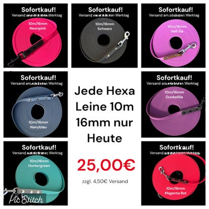 Heute habt ihr die Möglichkeit eine unserer Hexa Schleppleinen zum schnapperpreis zu bekommen. Die Leine ist 10 Meter lang mit Karabinerverstärkung. 16mm Hexa hat eine Bruchlast von 380 kg und ist somit bestens für eure Fellnasen geeignet. Versand am nächsten Werktag!