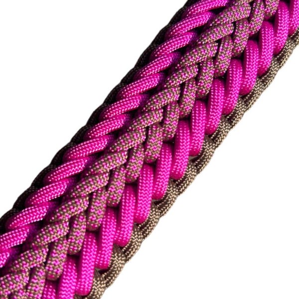 Die Farben der Hardware sind Silber. Paracord in Passion Pink und braun.