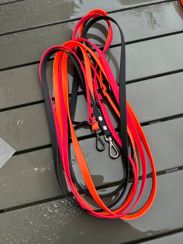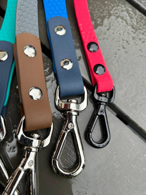 Unsere praktische Zweitleine für den Urlaub, Freizeit - fürs Auto und vor allen Dingen für nasse Angelegenheiten! Die Leine ist wasserfest und kann einfach abgespült werden - ohne viel Schnickschnack in 2 Meter Länge und 13mm breite mit fester Handschlaufe.