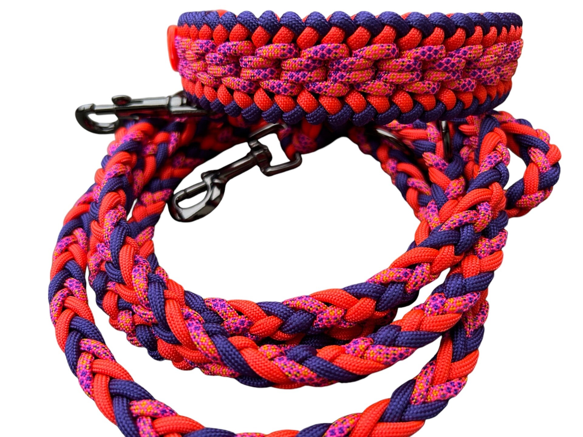 Unsere Komplettset besteht aus einer refle ktierendenHundeleine Modell Midi in der Länge 2,25m (+/-10cm) und ist 3fach verstellbar.