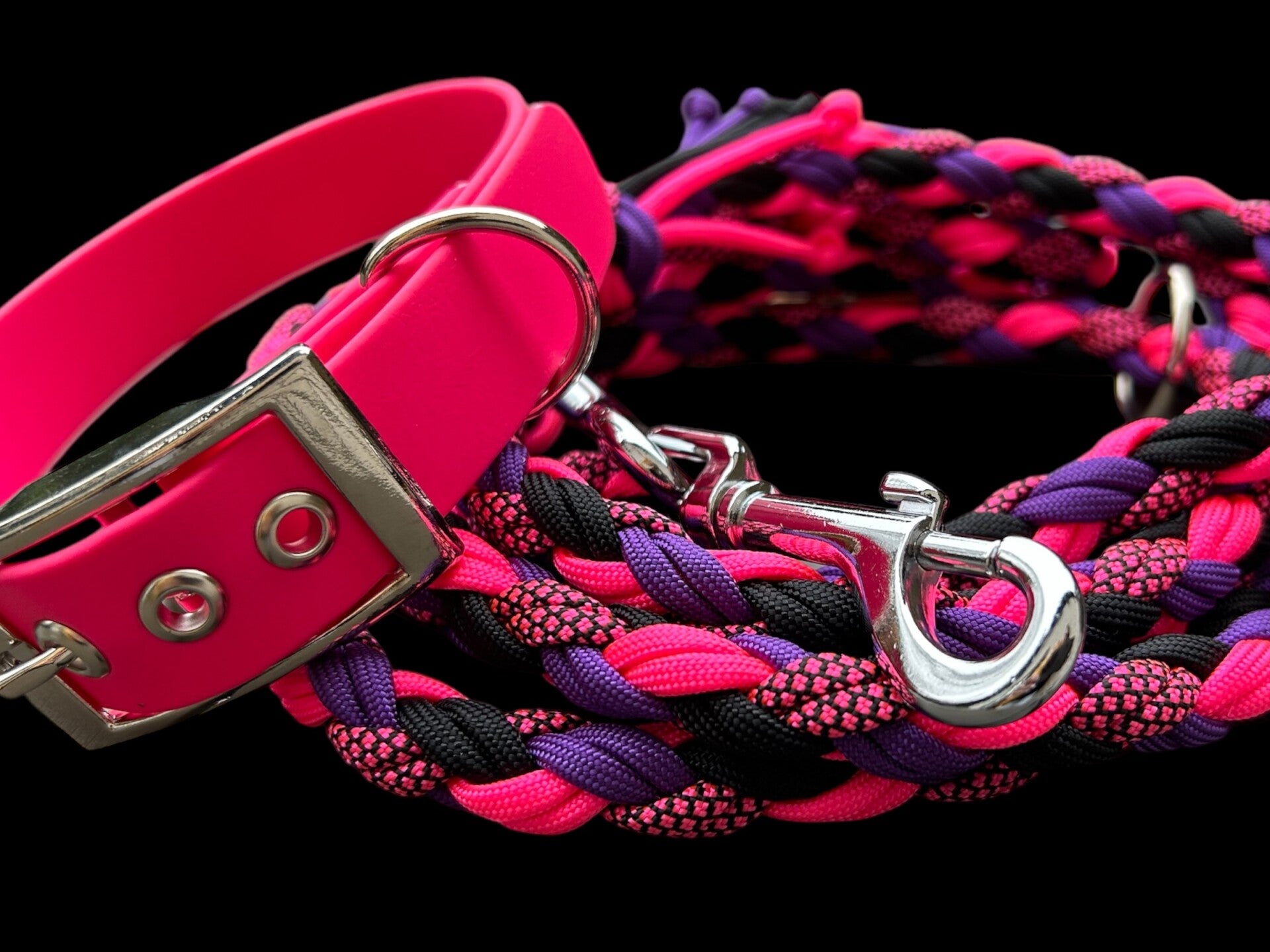 Unsere Komplettset besteht aus einer Hundeleine Modell Maxi in der Länge 2,65m (+/-10cm) und ist 3fach verstellbar.