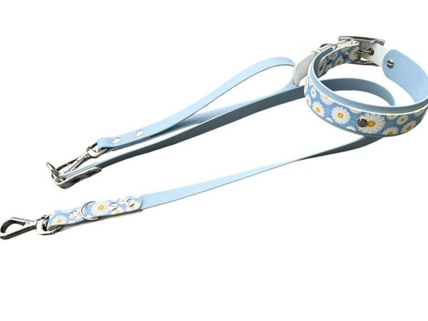 Die Farben sind für die Biothane - Pastellblau /Gänseblümchen UV Biothane